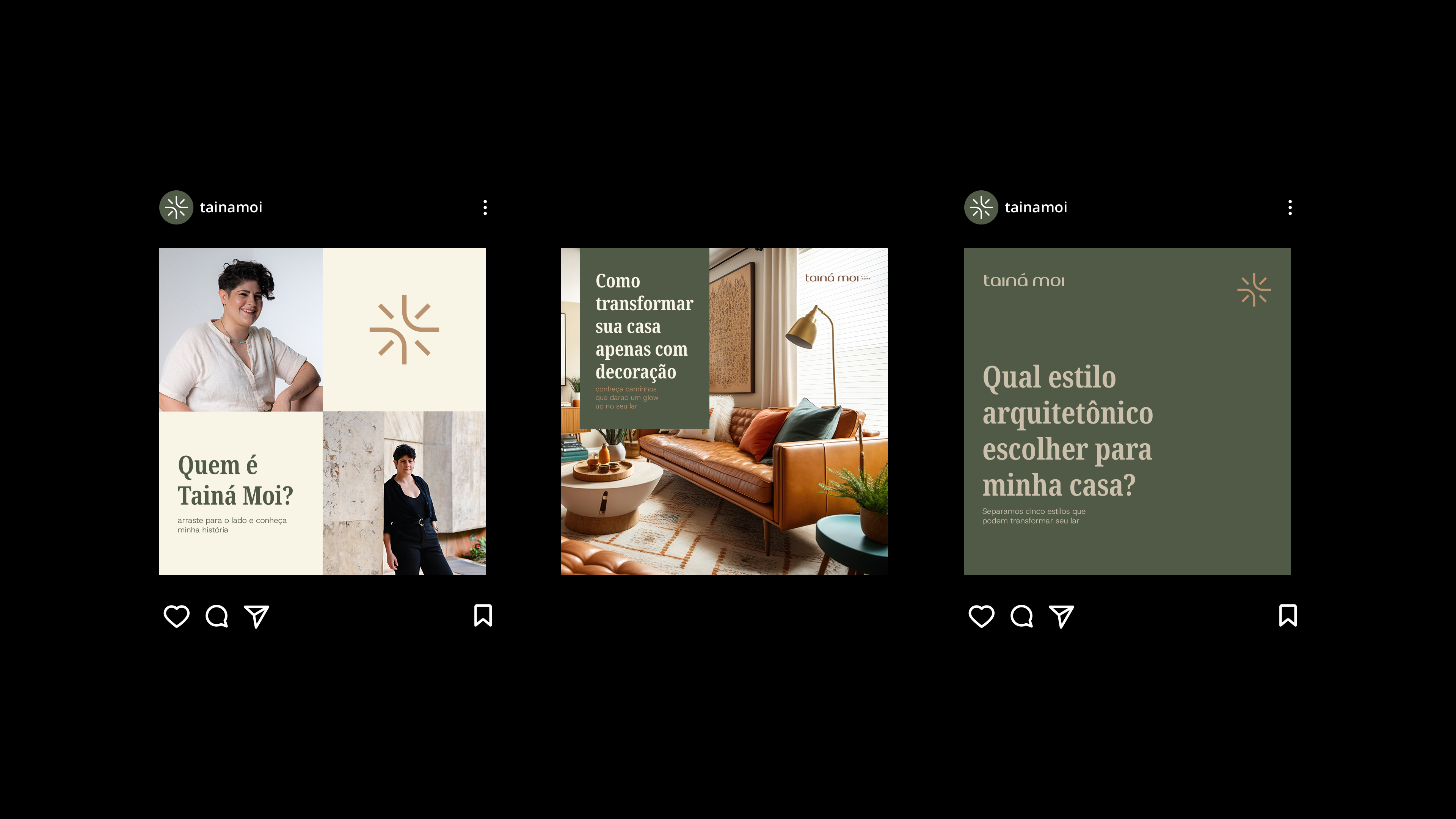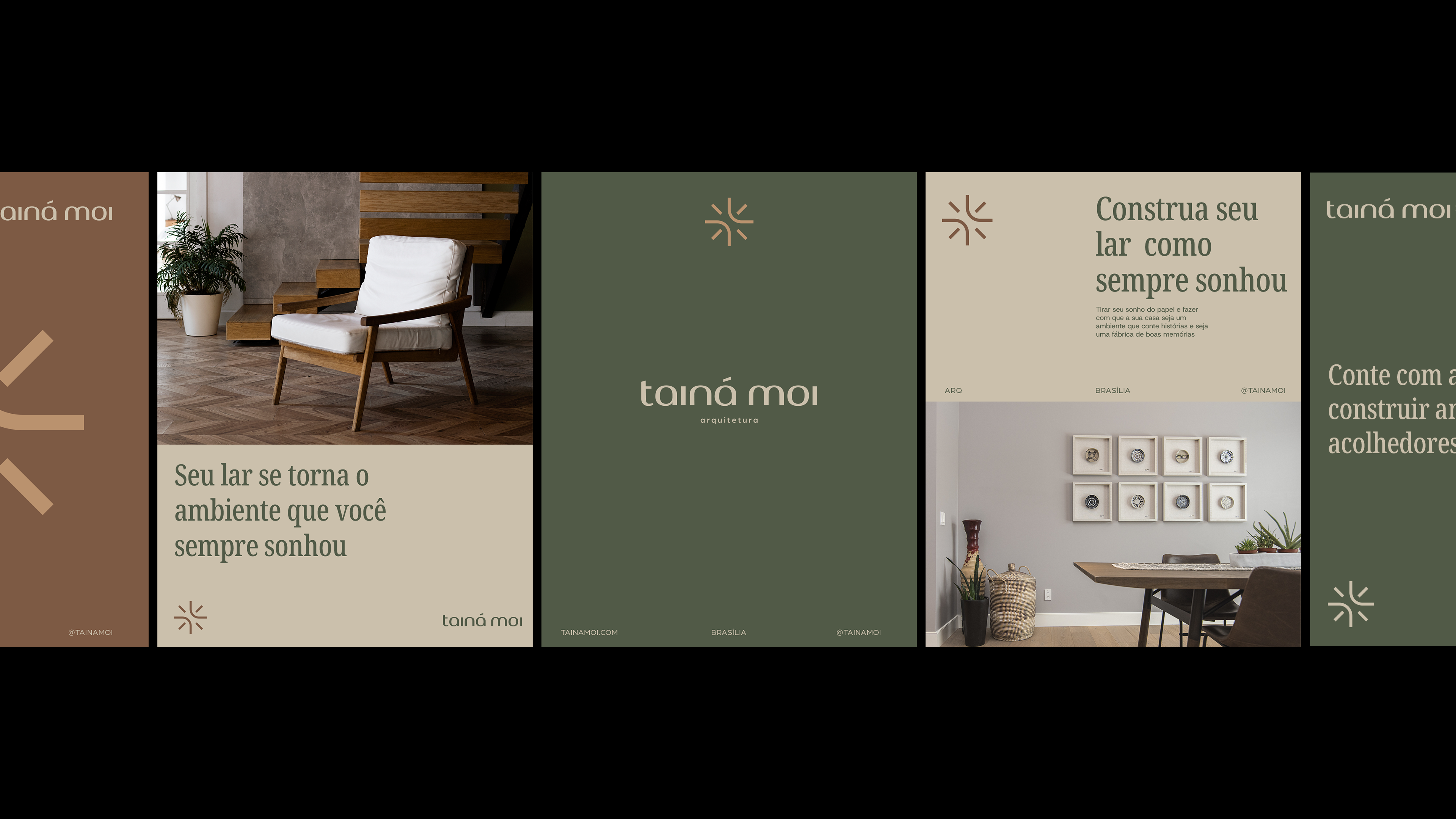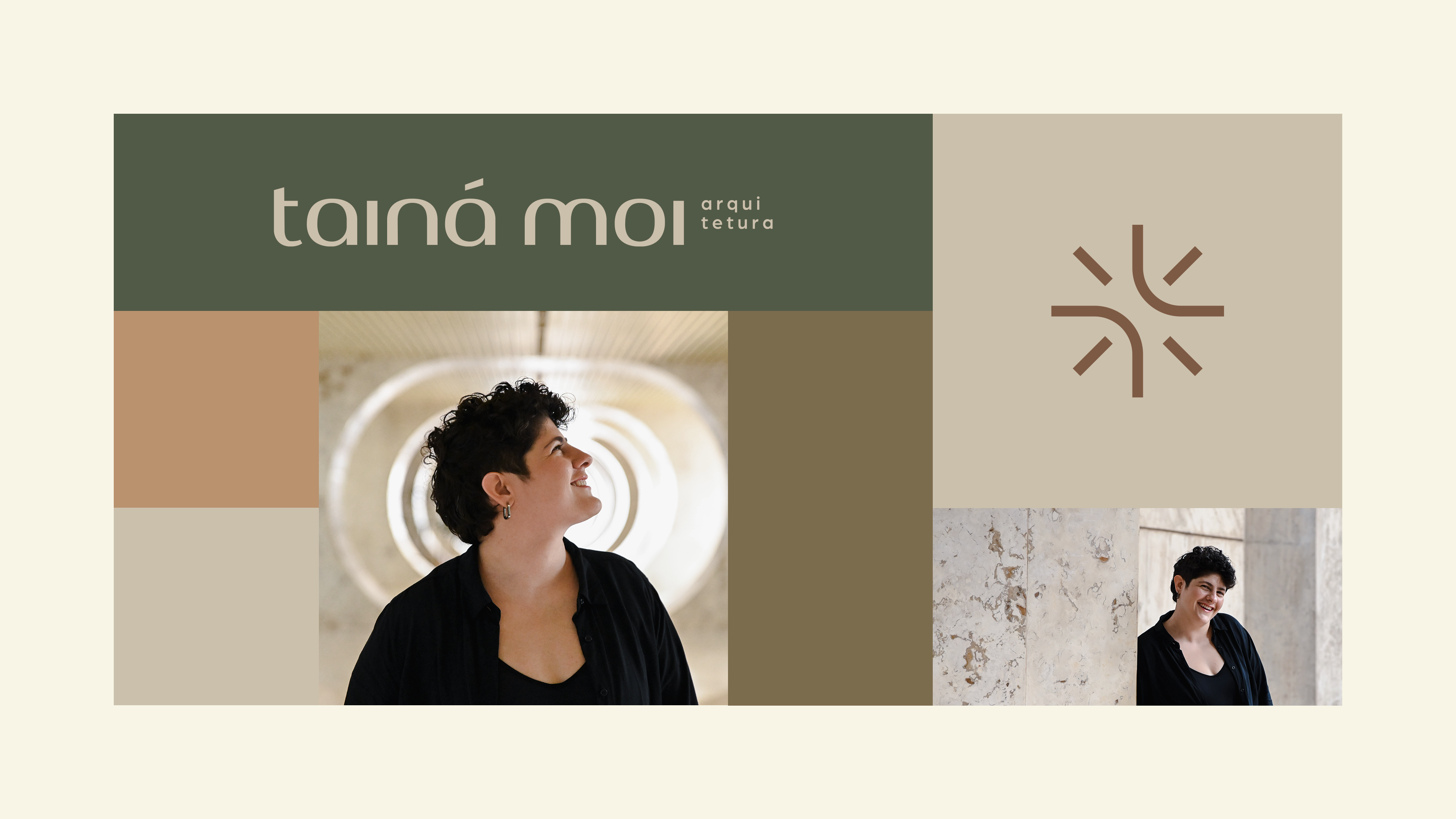 The color palette follows a line of pastel tones composed of brown, cream and green. This composition allows the brand to convey warmth, balance and to highlight the photographs with a strong presence in the visual identity. In addition, it is aligned with Tainá's new personal style.